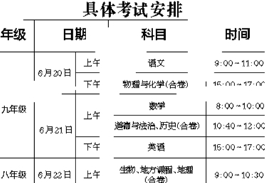我市中考考试科目及分值为:语文130分、数学120分、英语120分(含听力40分)、物理80分、化学50分、道德与法治50分、历史50分;体育40分,其中平时体育成绩15分、考试成绩25分;理化生实验操作考试20分;地理、生物、地方课程以等级折算计分,等级A折算20分、等级B折算16分、等级C折算12分、等级D折算8分。中考总分满分为680分。