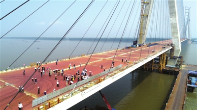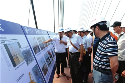 6月26日上午,市交通运输局邀请市人大代表、政协委员、市民代表和交通运输行业先进代表共百余人赴嘉鱼长江公路大桥施工现场参观。在主跨920米、宽33.5米的大桥桥面上,大家脚踏钢铁桥体,近看专注作业的工人师傅,切身感受热火朝天的施工现场,远观东去的滔滔江水和络绎不绝的客船货轮,聆听项目建设负责人的讲解,深入了解大桥的建设历程和意义。大家纷纷赞叹大桥建设者先进的造桥理念、精湛的工艺技术和直面难题勇于创新的拼搏精神。 (记者 毛亚轩 赵忠志 通讯员 叶柳 陈播雨 )
