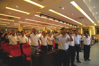 会议在庄严的国歌声中拉开帷幕,与会同志全体起立,跟着节奏深情地歌唱,饱满激昂的国歌声响彻整个会场,全体党员还在市自然资源和规划局党组副书记、局长李光领誓下,重温了入党誓词。大会审议通过了机关党委选举办法、监票人和计票人名单。大会采用无记名差额选举的办法选举产生了新一届机关党委委员和委机关纪委委员。会上,李光向大会作题为《坚守初心使命 勇于担当作为 谱写新时代自然资源和规划事业改革发展新篇章》的专题党课。