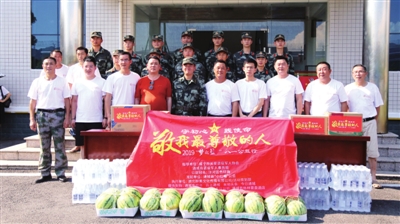 7月26日,市关爱退役军人协会组织会员单位及爱心企业代表,走访慰问通城县10户退役军人和军烈属家庭、“老兵之家”43名在通城县平安巡逻的老兵志愿者、驻隽武警中队现役官兵和通城县人武部官兵,为他们送上矿泉水、西瓜等降温物资及现金,向他们致以节日的问候和良好的祝愿。(记者 陈婧 通讯员 王帮) 详见2版