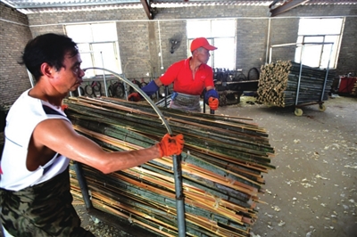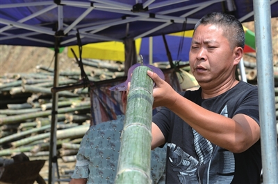 在机器设备的轰鸣声中,一根根竹子被破开变成条,然后进入流水线,变成竹签、竹筷……23日,记者来到海拔500米左右的通山大幕山巅的一处扶贫车间,52岁的企业负责人曾庆春正在抽检成品质量。