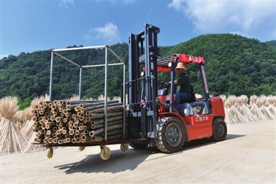 今年春节后,依托当地丰富的竹子资源,通山县阿眷竹制品合作社正式投产运营。曾庆春说,目前车间内有6条生产线,满负荷状态下日消耗竹子可达40吨。