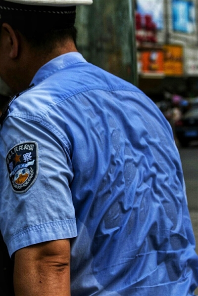 站在37℃高温下俩小时是啥感觉?阚冲说,高温天气下,站在路口执勤,首先感到的就是一个“热”字。“站在路面上,地表温度要比实际的温度高出不少。在执勤中,头顶着烈日,而地面的热气也不断地从裤腿往上钻。往往站不了几分钟,全身都会湿透了。”