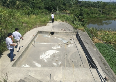 记者沿着排水沟步行至公司一侧,污水顺着排水沟排进一个一千多平方米的污水沉淀池。该搅拌站陈经理告诉记者,排水沟每10天清理一次,所有污水全部排入沉淀池内,池内的污水可以循环再利用,而且能为公司节约不少用水,因此他们没理由再往外排放。