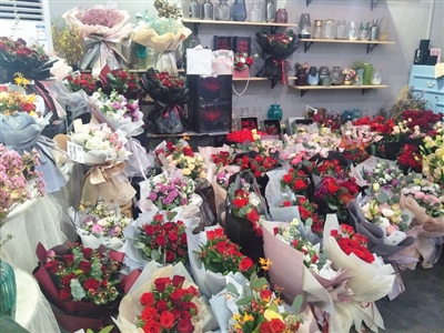 昨日上午,记者来到温泉城区滨河东路,只见沿路多家花店纷纷在着手准备七夕情人节花束,咨询预订的市民络绎不绝。