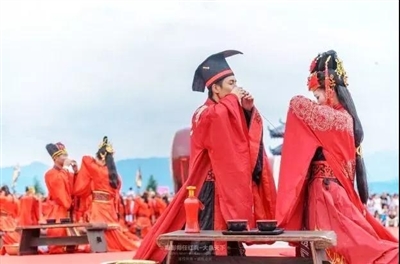 2.晚上,在二乔公园举办婚礼晚会,节目内容包括歌舞、二乔出阁礼、汉式婚礼仪式、集体吟诵。