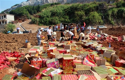 本报讯(记者 王奇峰 特约记者 李星 通讯员 陈亚平)8月7日,咸安区禁鞭办组织开展烟花爆竹集中销毁行动,将城区“禁鞭”以来因非法运输、储存、销售而收缴的烟花爆竹,在桂花镇一处关闭的采石场进行集中销毁。