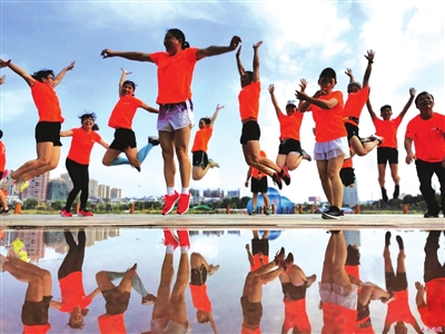 8月11日,通城跑团60多位跑步爱好者阳光晨跑,为2019咸宁国际温泉马拉松代言。