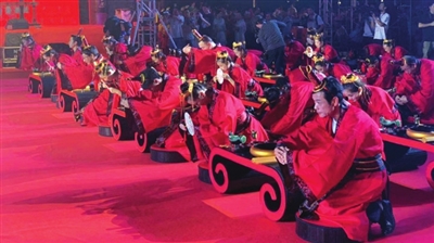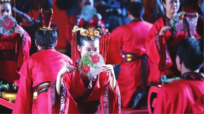 据统计,参加本次汉式婚礼体验活动涵盖了新婚、铜婚、锡婚、瓷婚、银婚、玉婚、宝石婚共7个婚龄段的国学爱好者参与。以《二乔出阁礼》为主打的非遗文化节目演艺人员近百人参加了演出活动。