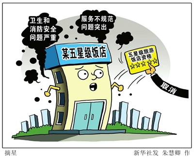 全国旅游星级饭店评定委员会16日发布公告指出,在近期文化和旅游部组织开展的暗访检查中发现,部分五星级饭店的卫生和消防安全问题严重,服务不规范问题突出。根据相关规定,全国旅游星级饭店评定委员会经研究决定,对5家饭店予以取消五星级旅游饭店资格的处理,对11家饭店予以限期整改12个月的处理。
