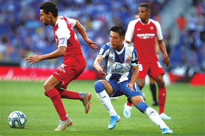 本报综合消息 武磊昨晨在西甲首轮为西班牙人首发出场,但表现不佳,西班牙人在主场以0比2不敌塞维利亚。