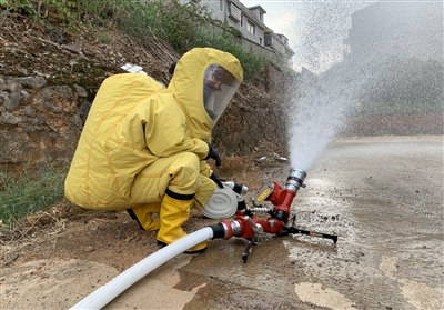 8月23日,为深入推进易燃易爆化工企业灭火救援工作,咸宁市消防救援支队在恒源液化气站开展泄漏事故模拟应急救援演练。(记者陈志茹 通讯员柳丹 阮晓芬)