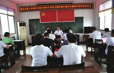 年初,湖北省信用联社提出了“基层党建年”活动,要求全省农商行要将支部建在村部上,全力推进整村授信工作,全面金融服务乡村振兴战略。按照省联社的要求,嘉鱼农商行茶庵支行以村银党建互联共建为切入点,扎实开展“村银党建互联”活动,在鱼岳镇陆码头村大力创建“金融服务样板村”,以点带面,推动金融服务乡村振兴战略全面发展。