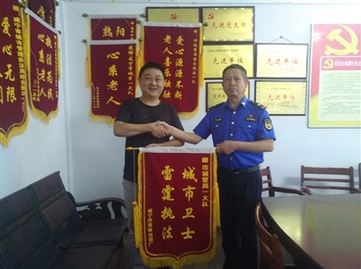 本报讯(记者周阳 通讯员袁义归 云耀辉)9月5日,咸宁市誉诚包装厂投资商毛先生,将一面写着“雷霆执法,城市卫士”的锦旗送到市城管执法委综合执法一大队,以答谢城管部门为企业排忧解难之举。