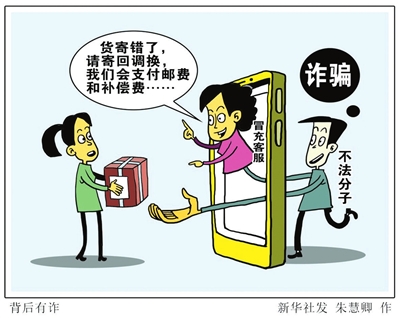 新华社消息 近期,一些不法分子冒充客服以“货寄错了,请寄回调换,将会支付邮寄费用和一定补偿费”为由实施诈骗。南京警方提醒,要多加留心,有时候看似热忱的服务背后往往就是一个骗局。