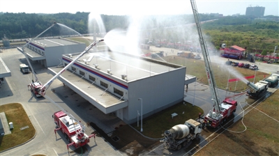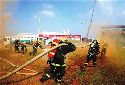9月19日,我市举行“迎大庆、保军运”应急救援综合拉动演练。市消防救援支队、市生态环境局、市气象局、市供电公司、移动分公司、120急救中心等有关单位参演。 (记者赵忠志 陈志茹 通讯员汪洋 朱燕林)