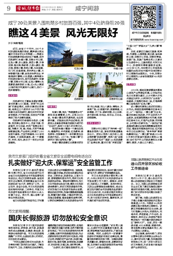 近日,全省17个市州、306个乡村旅游胜地激烈角逐,霸屏湖北朋友圈半月有余的《乡约荆楚——荆楚乡村旅游美景评选》活动拉下帷幕,我市四邑新村、柃蜜小镇、田野乡村公园、红色小镇、东山屋场、果匠小镇、月季庄园、澄水洞、熊家湾、九宫山景区、隐水洞、美酒小镇、枇杷小镇、光年城堡、石门村、松鼠部落、茅井养生小镇、大岭野樱天堂小镇、金色年华养生谷、羊楼洞茶叶镇等20处美景入围荆楚乡村旅游百强行列,其中四邑新村、柃蜜小镇、田野乡村公园、红色小镇等4处美景更是跻身前20强,这4处入围前20强的地方究竟有什么魅力,我们一起来看看吧!