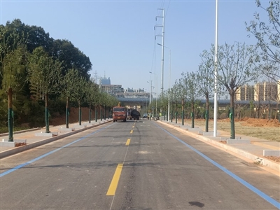 本报讯(记者叶和平 通讯员葛刚 肖强)昨日,记者在市区玉泉路延伸段看到,双向两车道的路面上,已施划交通标线,两旁的行道树已栽种到位,施工人员正在进行收尾清扫工作,路面上不时有车通过。