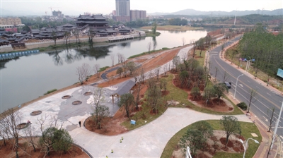 10月8日,记者在市区淦河龙潭段看到,沿河路生态景观工程正在加快建设中。据了解,该景观位于市区淦河大桥至龙潭大桥东岸绿地,是淦河流域环境综合治理工程之一,景观总面积为40911平方米。包含龙潭揽翠、柳絮堤语、桃影印月等三个景观片区,工程以“蘋溪烟雨,龙潭柳色”为文化主题来展现沿河路段的文化特色,沿线通过无障碍通道和绿道等形式将各个小景观串起来形成统一的龙潭柳色景观区。 赵忠志/摄