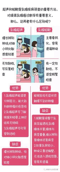超声和钼靶是乳腺疾病筛查的重要办法,对提高乳腺癌诊断率有重要意义,那么,这两者有什么区别呢?