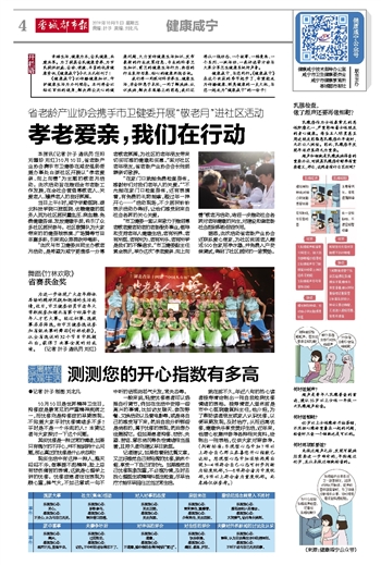 就在前不久,年近八旬的热心读者桂寿清绘制出一张自我检测忧郁情绪的表格。桂寿清老人退休前是市中心医院康复科主任,他介绍,为了帮助读者朋友或家人认识忧郁,以便早期发现,及时治疗,从而远离优郁,健康快乐享受美好生活,近年来,他潜心收集并参考各种相关资料,绘制出一张表格,仅供大家对照参考。(判断标准:乐观型心态中如7项以上符合自己那么恭喜您开心指数已达标。悲观型心态中如连续两周出现3—4项符合自己心态可初步判断为轻度忧郁,5—8项符合者为中度忧郁,9项以上符合者为重度忧郁。此表格仅供参考。)