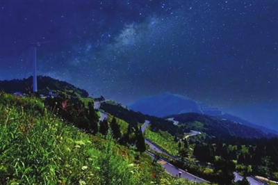 九宫山森林覆盖率达96.6%,是中国负氧离子含量最高的天然大氧吧。6.2万亩森林每年向空中散发3000多万吨水汽,使九宫山遍地喷泉飞瀑,四季涌流不竭。如今,九宫山铜鼓包已成为天文爱好者的“追星基地”、游客的“网红打卡地”。观星时节,开通铜鼓包到山下的星光巴士,每天持续到晚上零点左右。