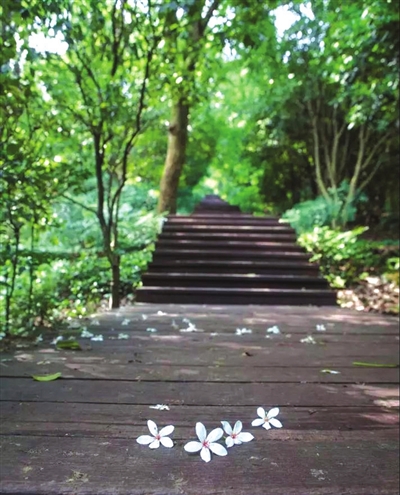 秋风袭人,天高气爽,从潜山山脚到山腰,两侧楠竹成海,夹杂青石古道。下雨后的空气中隐隐约约沾染了桂花的味道,竹林飒飒作响,行在山间心旷神怡。潜山山腰处还有咸宁桂花博览馆、竹子博览馆……沿路还能寻找到桂竹园、百竹苑、桂竹亭、梅竹亭、松竹亭等人文景观。