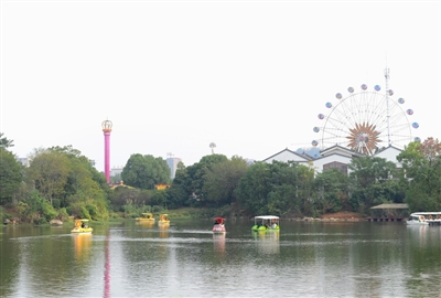 持续的阴雨天气后,10月17日,市区天空终于露出了太阳,不少市民趁着秋高气爽之际,在十六潭公园散步锻炼、划船嬉戏,品味秋意。