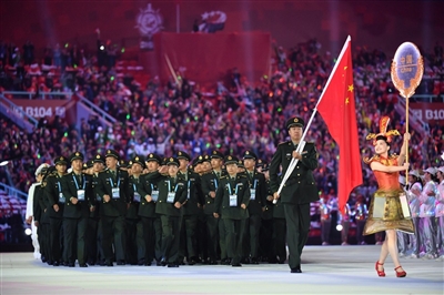 10月18日晚,第七届世界军人运动会开幕式在武汉市隆重举行,随着中国代表团压轴出场,现场再次掀起高潮,欢呼声、掌声不断。