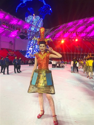 开幕式当天:身穿12斤重服饰 站立五个多小时