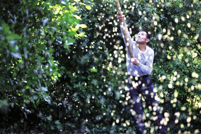 今年的桂花比往年开的更晚一些,直到这深秋十月,才徐徐盛开。10月19日早上7时许,咸安区桂花镇的村民们,就扛起竹篙,带上棚布,欢快的上山打桂花。