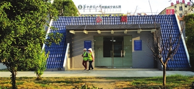 在温泉潜山公园停车场旁边,有一幢极具荆楚风格和棕色中式古典特色的公共厕所,与潜山公园环境自然融合。厕所里,盥洗间的大镜子干净明亮、大理石洗手台一尘不染、感应式水龙头、洗手液盒、烘干机等洁净如新,这是我市城镇厕所革命的一个缩影。