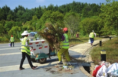 我市城区环卫工人肩负着整个城区124条主次干道、603条背街小巷的清扫保洁、垃圾清运处理和居民区的垃圾收运、淦河河道及公共厕所的保洁等任务。