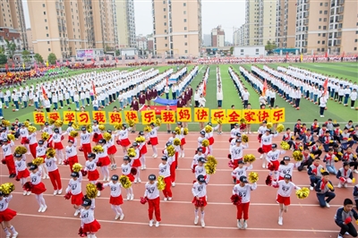 本报讯(记者熊大平)“我爱学习,我妈快乐;我妈快乐,全家快乐!”昨日,咸宁实验外国语学校第五届秋季运动会开幕式上,六年级学生方阵高举并喊出这一口号,引发全场爆笑。