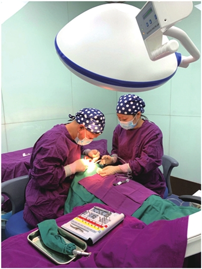 沈叔叔来到湖科口腔医院之后,由许炎标院长查看了沈叔叔的牙槽骨情况。为沈叔叔制订All-on-4微创即刻种植修复方案。该技术只需要植入4颗种植体即能恢复半口好牙,而且当天就能进食,沈叔叔和儿子认真商量后同意了这一方案。