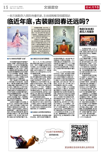 进入11月,不少观众会发现近期古装剧的播出限制似乎正在逐步松动,一些中小体量的古装剧在网站先后播出,如正在网站播出的《恋恋江湖》《白狐的人生》《东宫》,近期可能要上线的古装剧也不乏一线明星和阵容,如《从前有座灵剑山》《庆余年》《鹤唳华亭》等。
