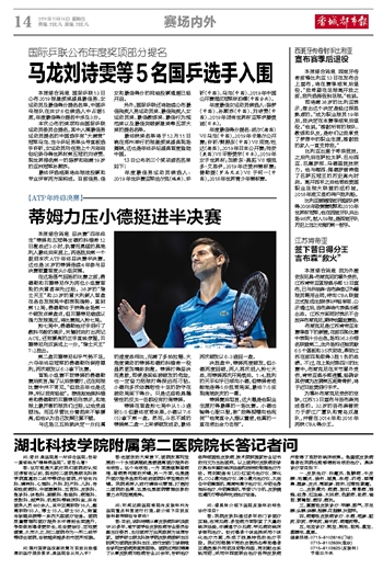 马龙刘诗雯等5名国乒选手入围