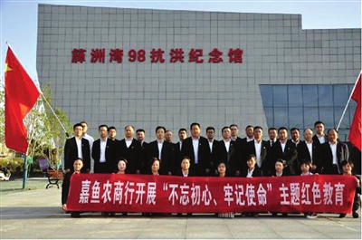 本报讯 (通讯员 杨惠春) 为进一步深化“不忘初心、牢记使命”主题教育,唤醒党员使命意识,日前,嘉鱼农商行组织全行中层干部、党员代表前往簰洲湾98抗洪纪念馆,开展“不忘初心、牢记使命”革命传统教育,传承红色基因。