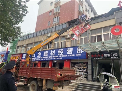 近期,该大队结合“不忘初心、牢记使命”主题教育,将“守初心、担使命,找差距、抓落实”总要求贯穿于城市环境综合整治全过程,坚持组织执法人员深入城区排查,锁定陈旧破损、违规设置广告牌,并联系专业操作人员,先后拆除桂花路、太乙大道、贺胜路等路段违规、破损广告16块,净化城市视角空间。 (记者周阳 通讯员云耀辉)