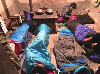 然而,队员们还是相互壮胆结伴回到屋中,为了保证大家安全,在房间里没有床的情况下,大家一人一个睡袋围着灶房的土灶席地而睡。一周下来,地上的潮气入侵,队员们纷纷感冒,甚至发烧。然而,众人纷纷咬紧牙关,一直坚持到该段线路勘测工作完成,才结伴下山居住。