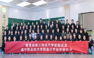 本报讯(记者原子 通讯员龚斌安 邢圣煜) 12月20日,咸宁职业技术学院与北京东大正保科技有限公司联合举办的会计专业现代学徒制正保班在鄂南会计中心开班,此举标志着该校通过校企合作构建特色职业教育现代学徒制人才培养模式已经形成。
