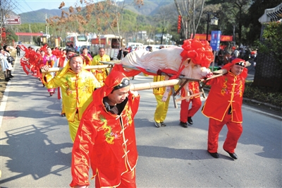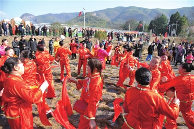 “哐、哐、哐哐切,哐哐切哐切哐切”,别开生面的抬年猪巡村拉开了年味十足的2020年年俗表演序幕。来自各地游客以及当地村民们,欢聚在村里的现代农业科技园前的空地,看传统的《采莲船》和《蚌壳舞》民俗表演,尽情品味最地道的年味。活动现场,省群艺馆、市文艺志愿者团队与当地村民联袂演出,为观众送上了丰盛的文艺大餐。寒风阵阵,演员们虽然穿着单薄的演出服却个个情绪饱满,从潮味十足的抖音歌曲《舞蹈串烧》到充满地域风情的《古田茶歌》,众多精彩的节目表演赢得了观众阵阵掌声。曾获央视青歌赛原生态组金奖的优秀青年歌手吴娟连唱《土家迎客歌》《再唱山歌给党听》两首民族风歌曲,让观众如痴如醉。在大家“再唱一首”的齐呼声中,她热情不减,又为大家清唱了一首《苗家飞歌》,将全场气氛推向高潮。