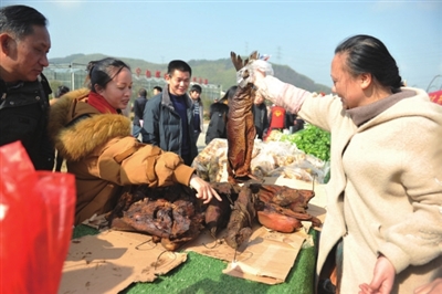 趁着文化进万家活动的爆棚人气,汀泗桥镇各村的专业合作社和农户都拉着农特产品来“赶集”了,从竹编、竹雕到干菜、豆腐乳、腊鱼腊肉,从出栏的鸡鸭到葡萄酒、茶油、吊瓜子,琳琅满目的农特产品让八方游客买到“爽”。
