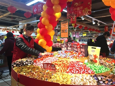 昨日上午,记者来到中百仓储咸安店,红艳艳的春联、红包、各式各样的糖果让节日气氛浓郁。今年41岁的董小琴身着红色马甲正在糖果区检查糖果陈列。董小琴祖籍四川,2007年进入中百仓储咸安店,从普通理货员做起,一步步地成长为行政课长。
