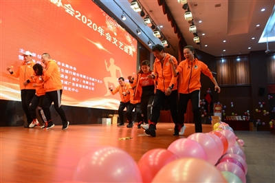 12日下午,咸宁市长跑协会2020年会文艺盛典在黄鹤楼酒业公司会议厅举行,各个年龄段的跑者们载歌载舞,共同迎接新年。