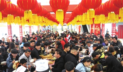 1月17日,咸宁万达广场一楼人山人海、热闹非凡。由本报联合咸宁万达广场举办的咸宁首届邀吃日暨年货大集在这里举行,活动吸引了众多市民前来品美食、打年货。 赵忠志 张仰强/摄 详见3-4版