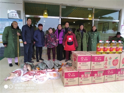 当天,气温冰冷,寒气袭人。然而,在咸安区相关乡镇福利院和相关困难群众家里却处处暖气融融。在咸安区官埠桥镇和咸宁高新区横沟桥镇福利院,记者见到该区民政局局长罗继红一行分别给这两个乡镇福利院供养的老人们送上了10箱油、10箱萍果、100斤肉、200斤鱼的春节生活物质。“这是一点心意……”罗继红代表慰问组将油、肉、鱼等慰问品一样样送到老人手上。“感谢党,感谢区民政局……”官埠桥镇福利院的老人们不约而同地连声道谢;当慰问组来到横沟桥镇福利院时,老人们则围过来,拉着罗继红的手:“闺女,我们生活在福利院,比住家里还要好,感谢你们送来这么多生活物资……”