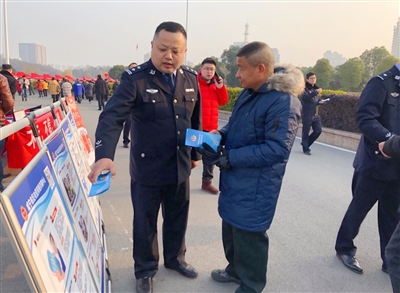 1月20日,咸宁市公安局反电信网络诈骗中心在市人民广场开展反电信网络诈骗宣传活动。