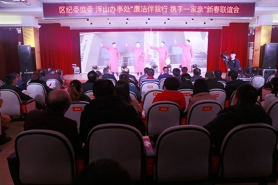 1月19日,咸安区纪委监委和浮山办事处联合举办“廉洁伴我行、携手一家亲”新春联谊会。(记者 王奇峰 通讯员 刘娜)