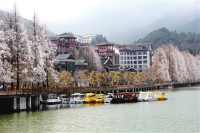 雾凇俗称树挂,是在严寒季节里,空气中过于饱和的水气遇冷凝华而成,是非常难得的自然奇观。作为通山景区海拔最高的地方,九宫山之巅每年冬天都会出现雾凇景观,令人神往。